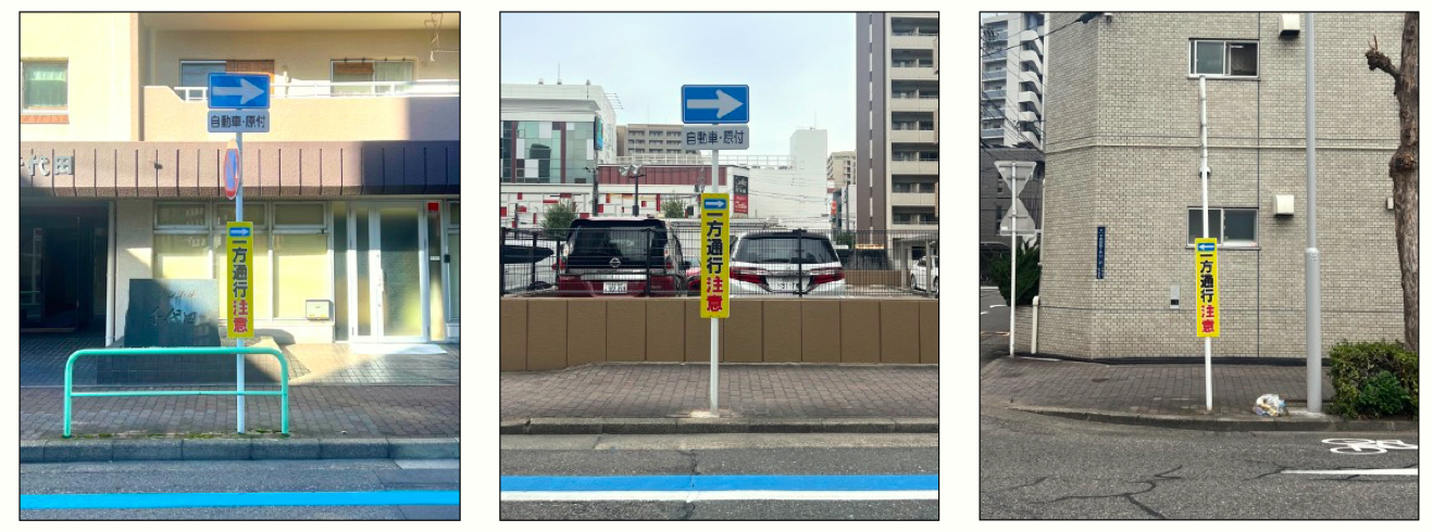 中警察に相談し、新規で3箇所に「一方通行注意」の看板を設置しました。
